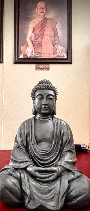 After a week of careful preservation by Ajaan Isaac, the abandoned Buddha image has been successfully restored and will be formally enshrined in its new wooden shelter within the forest. During this ceremony, we will dedicate the merit from this restoration to Luangpu Uthai, whose teachings inspire the wholesome deeds behind this work.